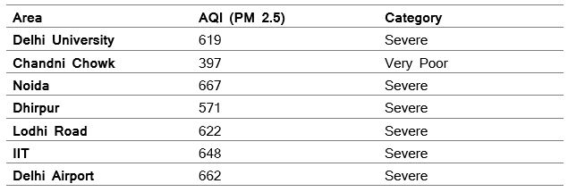 By 10 am, the Central Pollution Control Board (CPCB) recorded 'severe' air quality, meaning the intensity of pollution was extreme. Almost all stations tracking the pollution level in the city marked the air quality as hazardous.